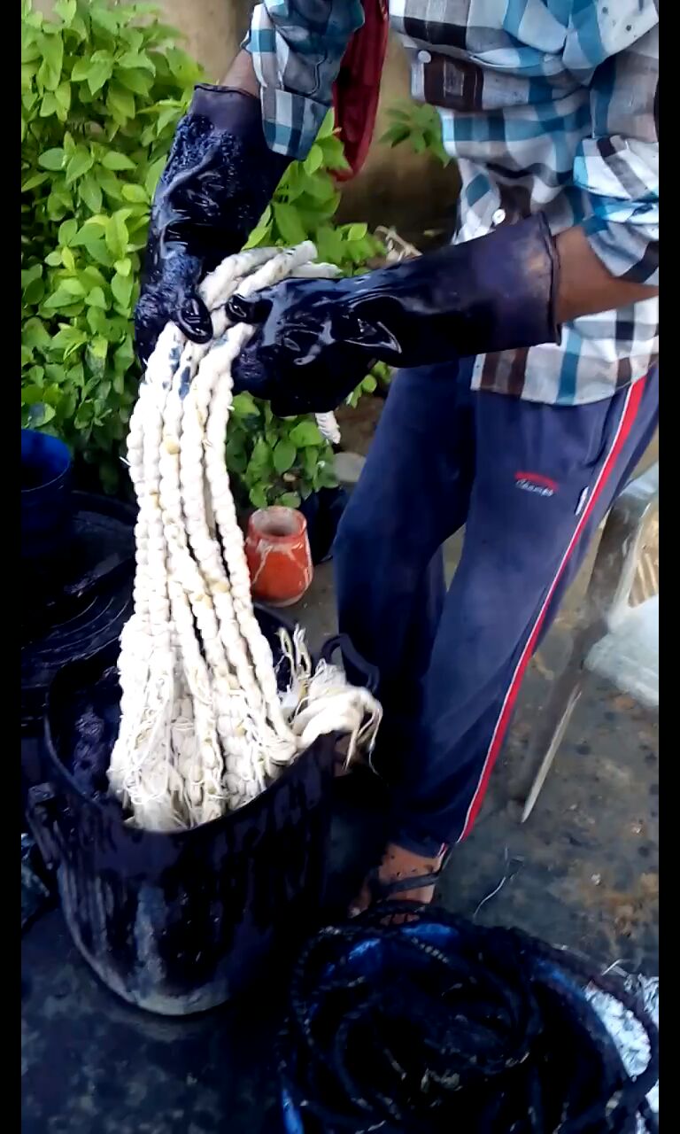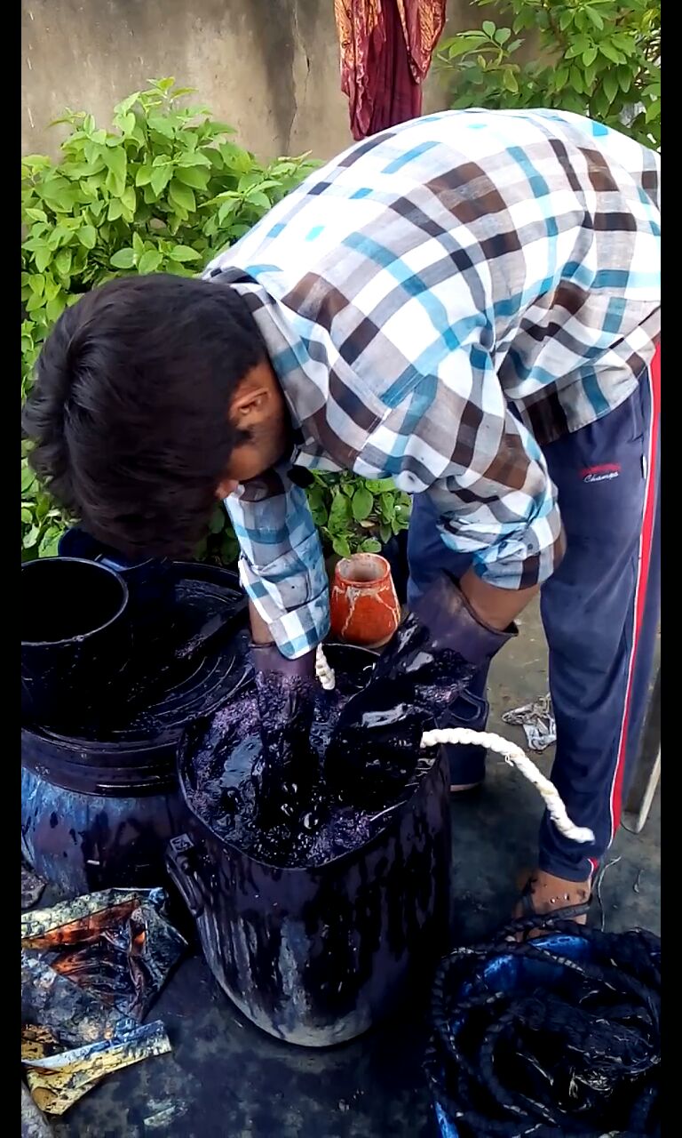 - Materials : Soft cotton fabric, indigo dye, plant dye